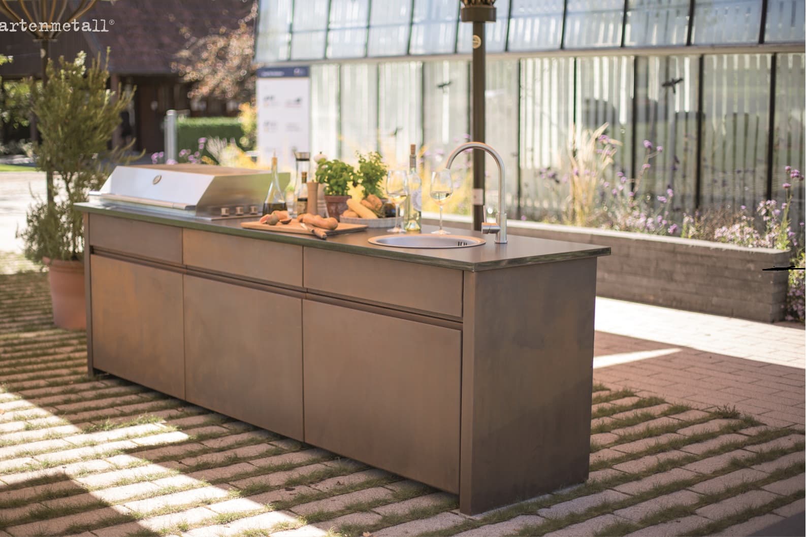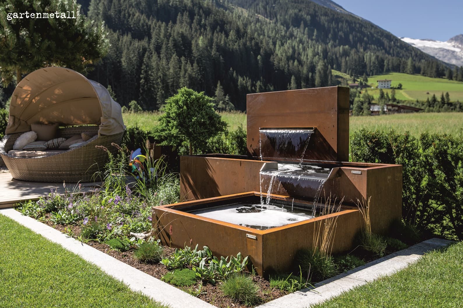 Our product range covers practically all areas of demand for metal in the garden: Water features, fountain systems, earth, fire, wellness, outdoor kitchens, garden furniture and much more.