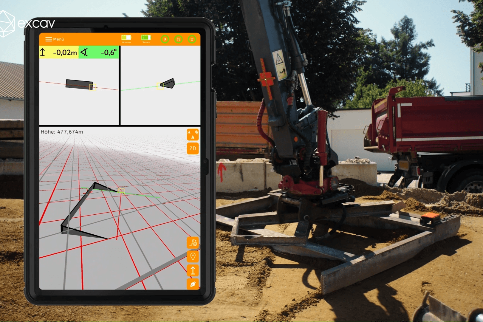 excav stellt mit dem excav PILOT ein portables, baggerübergreifendes und schnell nachrüstbares GNSS-Assistenzsystem für Erdarbeiten her. Mittels an dem Werkzeug angebrachter Sensorik wird dieses im Raum erfasst und die Informationen in Echtzeit an den Baggerfahrer weitergegeben. Dadurch können Erdarbeiten deutlich zeit- und personaleffizienter ausgeführt werden, da das Nacharbeiten entfällt. Der excav PILOT ist aufgrund seines innovativen Ansatzes auch auf kleinen und älteren Baggermodellen profitabel einsetzbar.