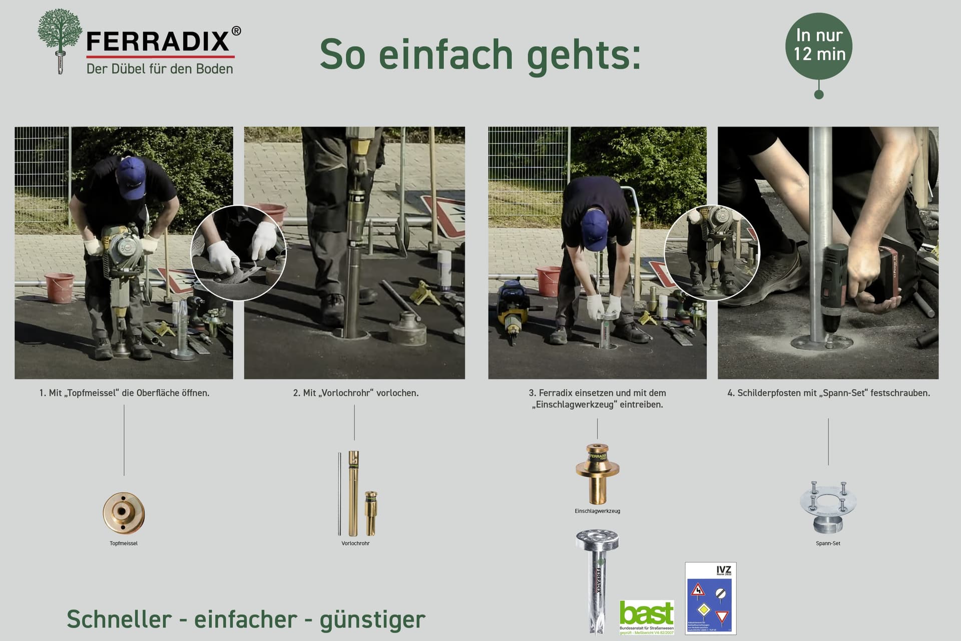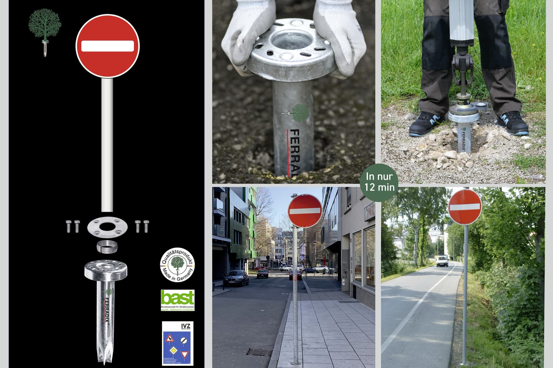 The FERRADIX® tools offer a perfectly matched system for affixing posts and signs in traffic engineering.